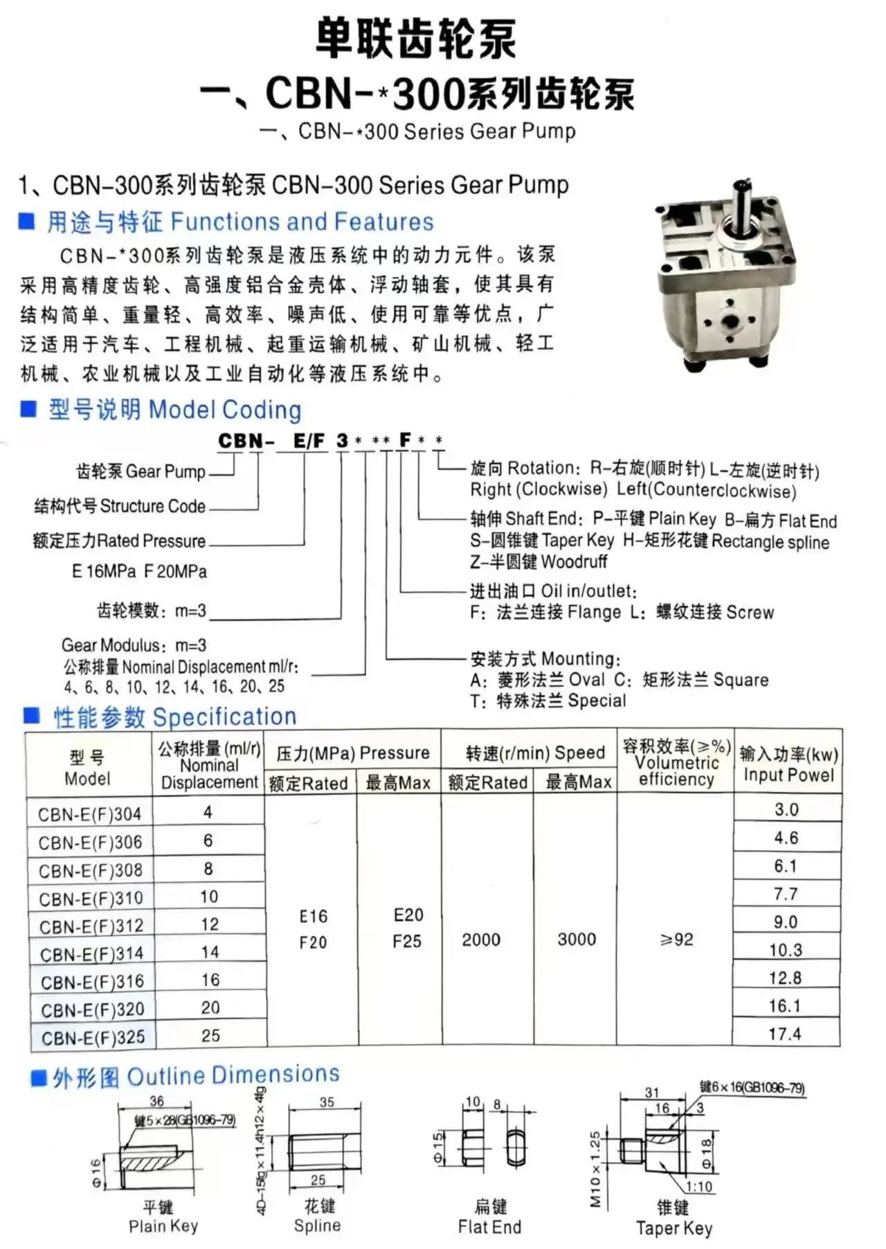 Hydraulic Gear Pump CBN-F304 CBN-F306 CBN-F308 CBN-F310 CBN-F312 CBN-F314 CBN-F316 CBN-F320 CBN-F325